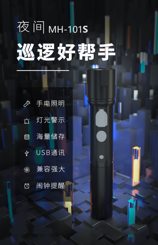 MH-101Z/ZS系列电子巡更设备,集手电照明、灯光警示、海量储存于一体。双色注塑材质耐用抗摔,触摸灯控+真人语音提示更贴心,支持实时上传数据、OLED中文显示、磁吸充电,电脑APP与小程序可随时查看报表,闹钟提醒+摔砸记录功能,让巡检工作更规范、更高效。